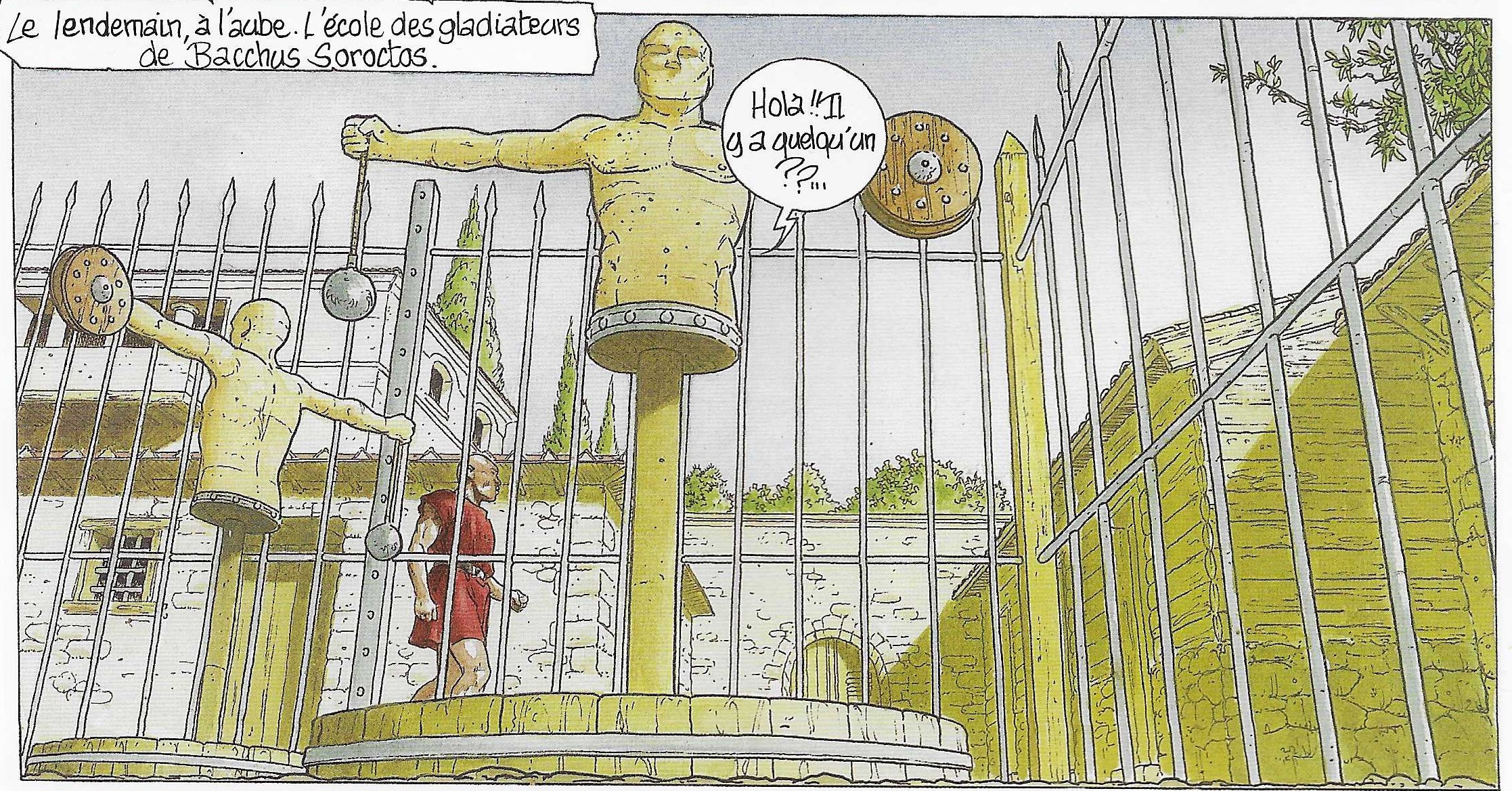 La couverture du tome 1 de la série Golgotha, sous titré L’Arène des maudits, nous incite à croire que cet opus est entièrement consacré à la gladiature et à Lucius, une de ses gloires à Pompéi en 63 ap. JC. Mais en réalité, à coté du tracé de vie tragique de ce gladiateur, se déroulent les tribulations d’un étrange personnage qui semble mystiquement éternel (voir l’article sur Cases d’Histoire).
