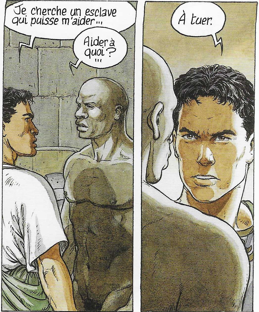 Dans le tome 2 De Sable et de sang, nous suivons l’esclave nubien Balba, venu dans une école de gladiateurs, apprendre à tuer.