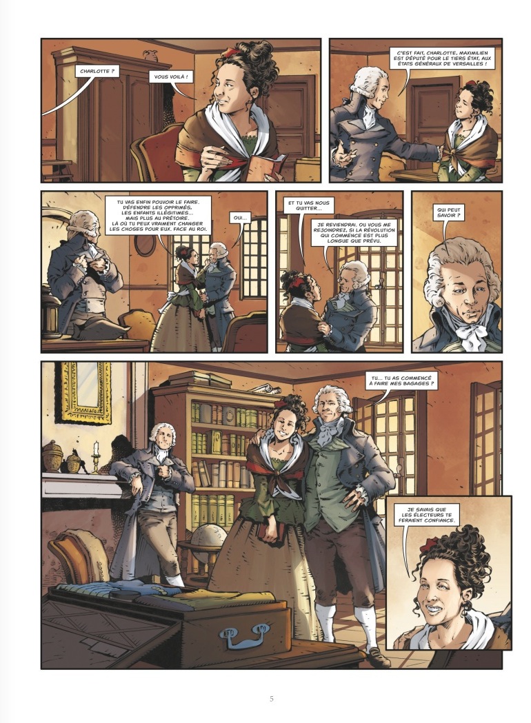 Si le projet est respectable, la réalisation est discutable. Alors que les lieux respectent fidèlement les gravures de l’époque, la ressemblance avec les portraits de Robespierre est parfois incertaine. Il est régulièrement présenté en colère, combatif voire violent, au-delà de ce qui est régulièrement dit de son caractère, certainement renfermé voire ombrageux. Son rôle est évidemment considéré comme le plus important dans la France révolutionnaire, ses discours étant pourtant réduits à quelques formules, si bien que si le fil général des événements est suivi, c’est au prix d’une grande complexité, qui ne rend pas la lecture aisée pour ceux qui ignorent le déroulement des faits. Reste un album qui ne cache pas son engagement en faveur de son héros présenté sous un jour austère, et qui demeure encore, au XXIe siècle, un enjeu discuté de la mémoire nationale !