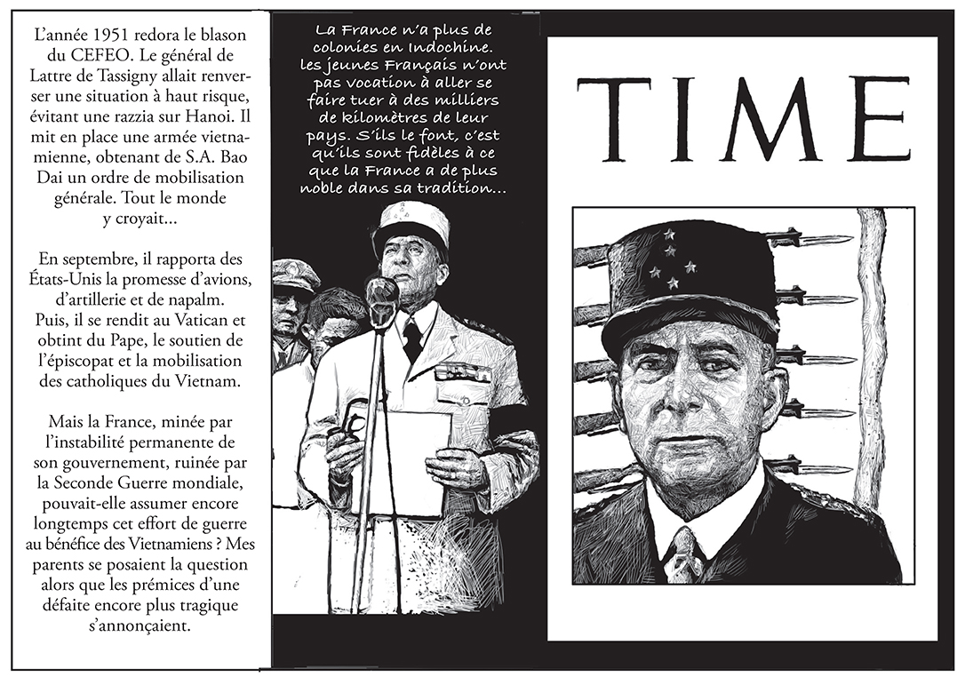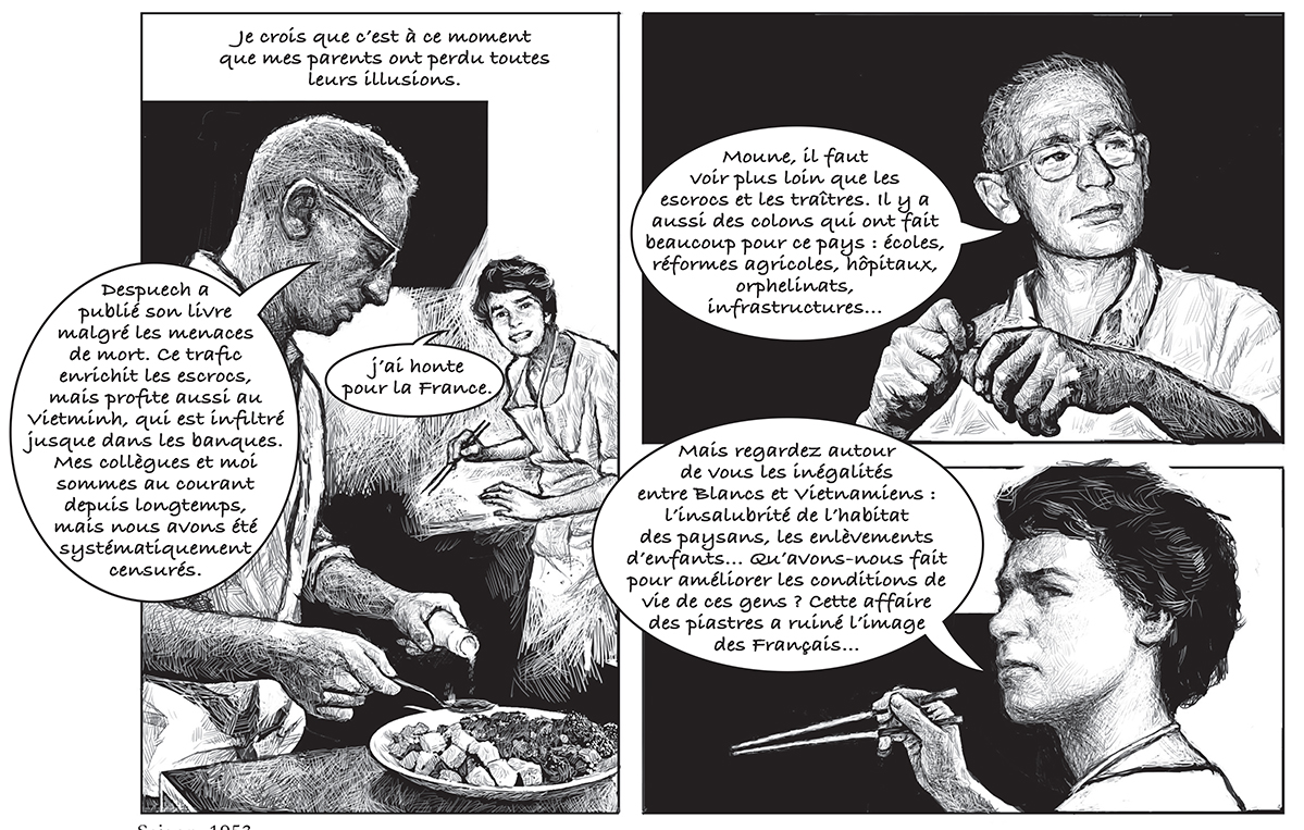 Moins nombreuses sont les cases consacrées aux scandales de « l’affaire des généraux » (p.37) et du « trafic des piastres » (p.82).