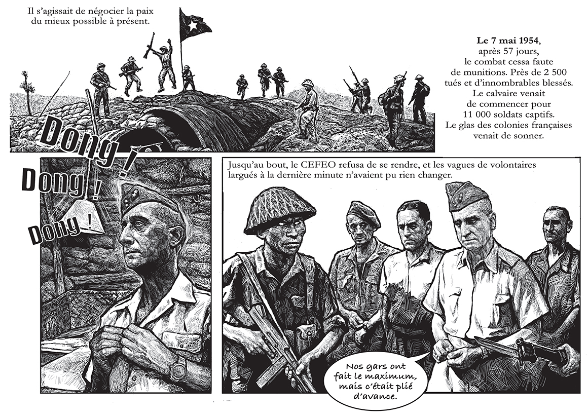 Pour nous faire passer ce message positif, les auteurs ont donc réalisé cette BD qui n’est ni une fiction ni un documentaire, mais qui possède la chaleur d’un témoignage, même s’il est décalé dans le temps. On ne peut que les suivre dans cette voie, puisqu’elle a été la racine de cet ouvrage excellent autant qu’instructif. « On a toujours à apprendre », nous dit la sagesse populaire avec raison. Même si on connaît bien l’événementiel de certains phénomènes historiques comme la décolonisation, rien ne vaut le vécu, même si nous parvient avec retard. La lecture de cet opus est donc vivement recommandée si on s’intéresse un tant soit peu à tout ce qui s’est passé durant cette « sale » guerre d’Indochine.